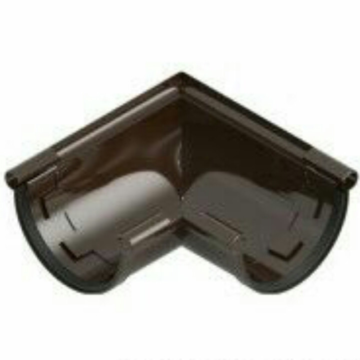 Универсальный (наружный и внутренний) угол желоба 90 градусов, водостока Ines, применяется для соединения желобов между собой на углах дома. Цвет: коричневый, белый, красный.