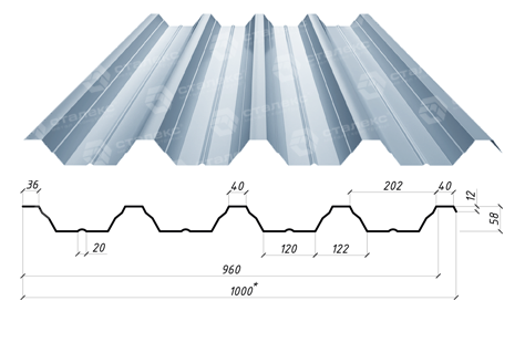 Профнастил Н 60 несущий — это несущий профнастил с оцинкованным покрытием , толщина металла 1 мм.