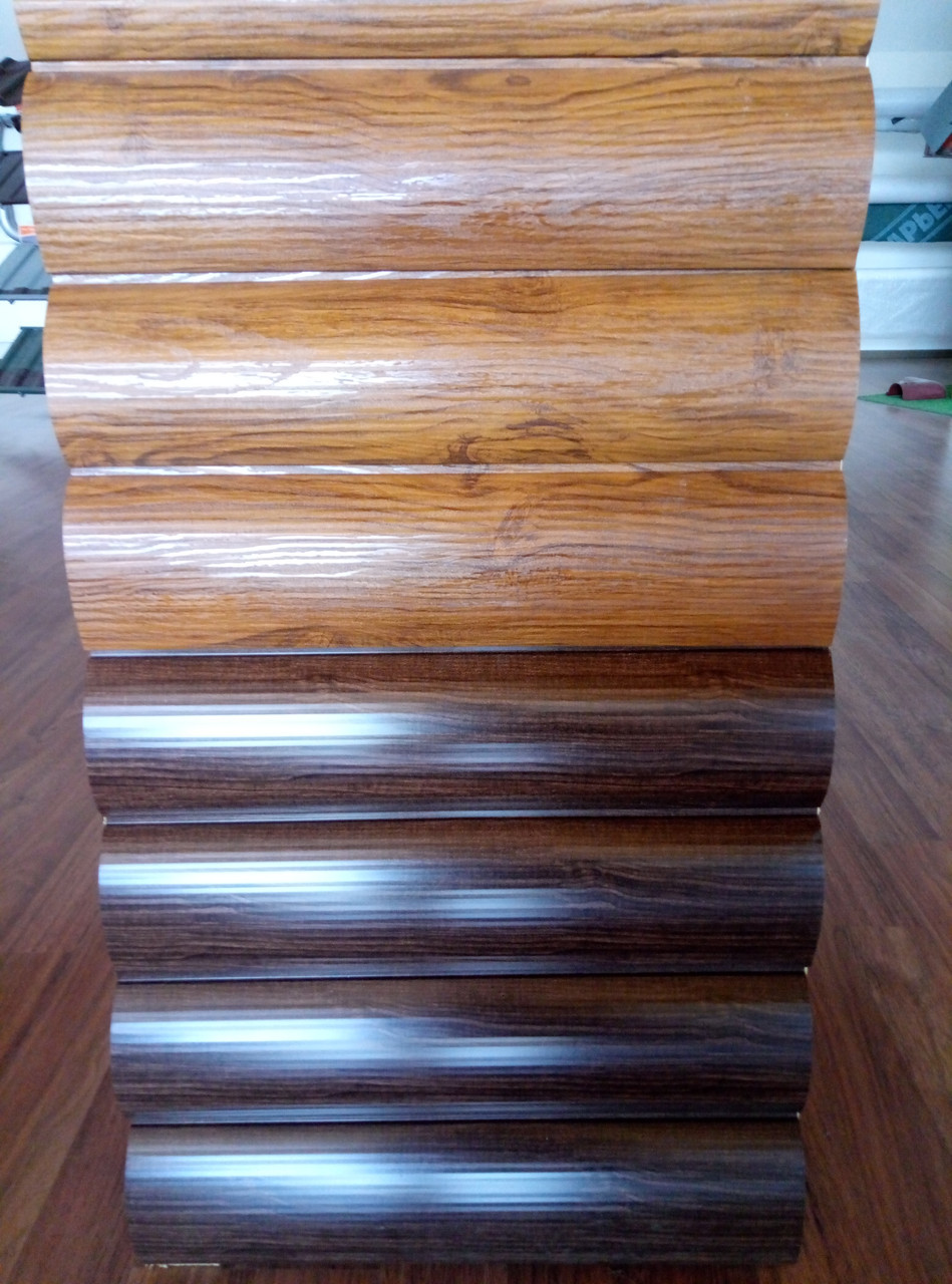 Блок-хаус Printech с имитацией металла под дерево — цвет — марокканский орех 0,4 мм Китайский металл.