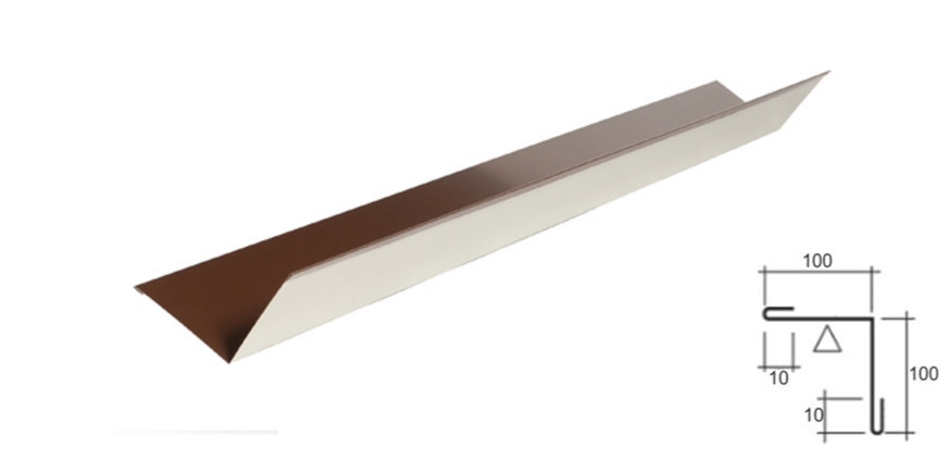 Размер планки зависит от типоразмера листа профилированного. Планка применяется для формирования внутренних углов стен из профлиста и примыканий